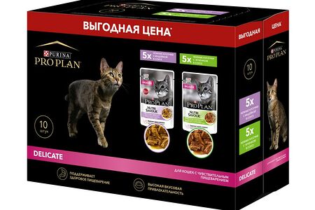 Корм для кошек PRO PLAN с чувствительным пищеварением, индейка с ягненком 10x85г НАБОР (упаковка - 4 шт) доставка