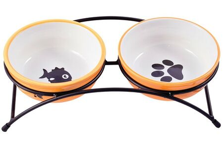 Миска для животных FOXIE Twin cats двойная оранж.керам. на металл. подставке 12,5х12,5х4,5см 2х200мл доставка