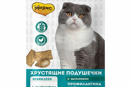 Мнямс хрустящие подушечки "Профилактика МКБ" для стерилизованных кошек Цыпленок и клюква доставка