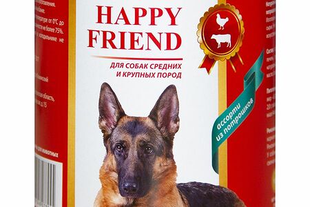 Корм для собак HAPPY FRIEND для средних и крупных пород ассорти из потрошков банка 750г, 1 шт. доставка