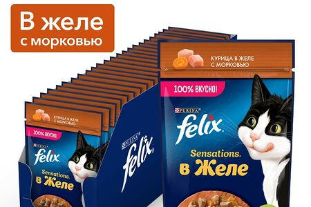 Корм для кошек FELIX Sensations Желе курица с морковью пауч 75г (упаковка - 26 шт) доставка