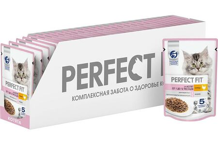 Корм для котят PERFECT FIT от 1 до 12 месяцев, курица в соусе пауч 75г (упаковка - 28 шт) доставка