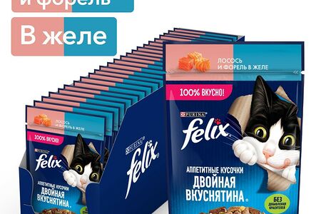 Корм для кошек FELIX Двойная Вкуснятина лосось с форелью пауч 75г (упаковка - 26 шт) доставка