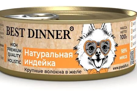 Консервы Best Dinner High Premium Holistic для взрослых собак и щенков всех пород. Натуральная индейка 100гр доставка