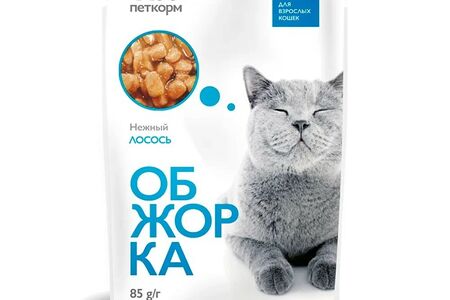Корм для кошек ОБЖОРКА кусочки в соусе с лососем пауч доставка