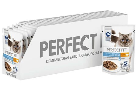 Корм для кошек PERFECT FIT для красивой шерсти и здоровой кожи, индейка в соусе пауч 75г (упаковка - 28 шт) доставка