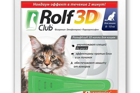 Капли от клещей и блох Rolf Club 3D для кошек 8-15 кг, 1 пипетка доставка