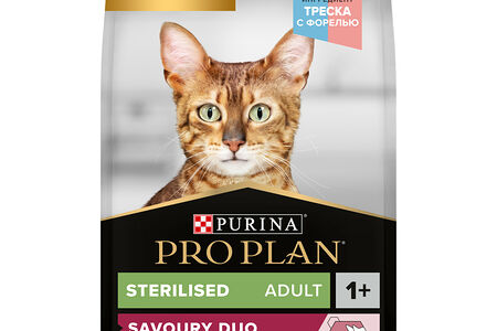 Сухой корм PRO PLAN® Sterilised Adult SAVOURY DUO для взрослых стерилизованных кошек, с высоким содержанием трески и с форелью 3 кг доставка