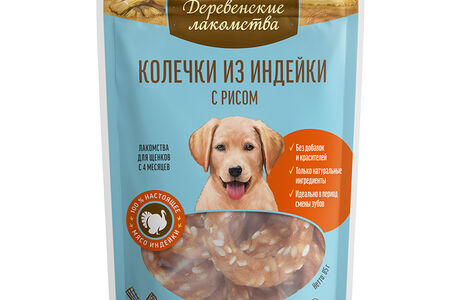 Лакомство для щенков Деревенские лакомства Колечки из индейки с рисом доставка