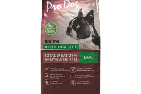 Корм для собак PRO DOG для средних пород с чувствительным пищеварением, ягненок сух. доставка