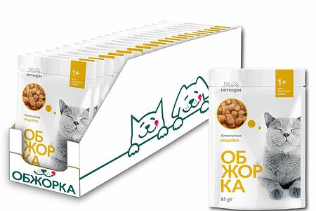 Корм для кошек ОБЖОРКА кусочки в желе с индейкой пауч 85г (упаковка - 24 шт) доставка