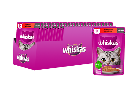Корм для кошек WHISKAS говядина, печень паштет пауч 75г (упаковка - 24 шт) доставка