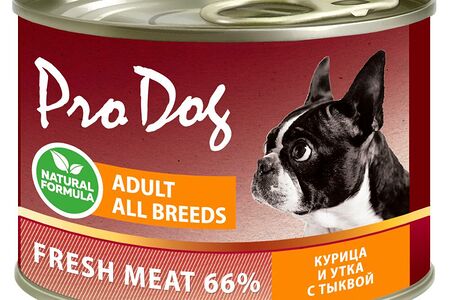 Корм для собак PRO DOG курица, утка, тыква банка доставка