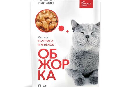 Корм для кошек ОБЖОРКА кусочки в желе с телятиной и ягнёнком пауч доставка