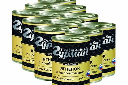 Корм для собак СЧАСТЛИВЫЙ ГУРМАН Ягнятина натуральная с пребиотиком в желе конс. 340г (упаковка - 12 шт) доставка