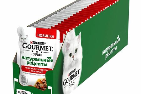 Корм для кошек GOURMET Натуральные рецепты тушеная говядина с томатами пауч 75г (упаковка - 26 шт) доставка