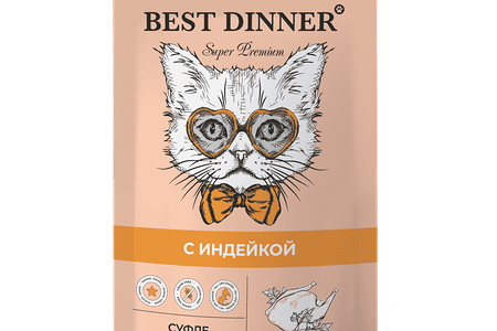 Корм для кошек BEST DINNER Мясные деликатесы Суфле индейка пауч 85г (упаковка - 24 шт) доставка