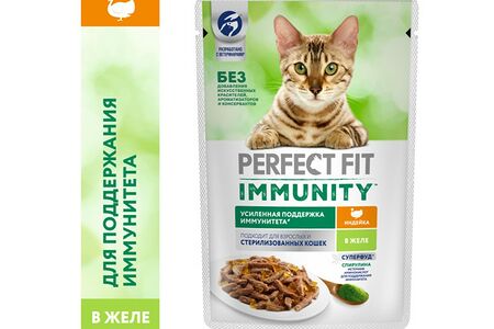 Корм для кошек PERFECT FIT Immunity индейка, спирулина пауч 75г (упаковка - 28 шт) доставка