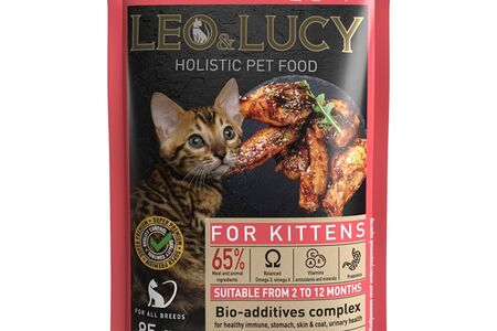 Корм влажный для котят Leo&Lucy кусочки в соусе с курицей, кроликом и биодобавками 85г, Россия доставка