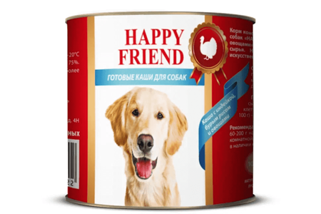 Корм для собак HAPPY FRIEND Каша с индейкой, бурым рисом и овощами 525г доставка