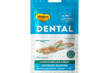Лакомство для собак Мнямс DENTAL Крученые палочки с ягненком и мятой доставка