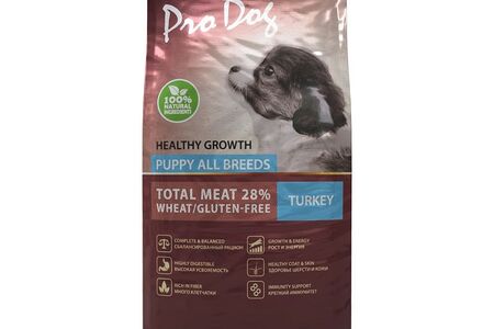Корм для щенков PRO DOG для здорового роста и энергии, индейка сух. доставка