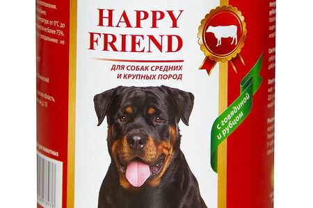 Корм для собак HAPPY FRIEND для средних и крупных пород с говядиной и рубцом банка доставка