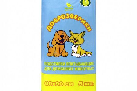 Пеленки для кошек и собак Доброзверики впитывающие, 60х90см 5шт доставка