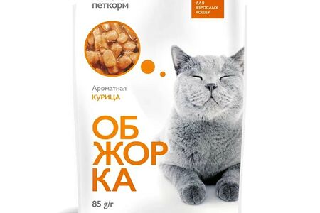 Корм для кошек ОБЖОРКА кусочки в желе с курицей пауч доставка