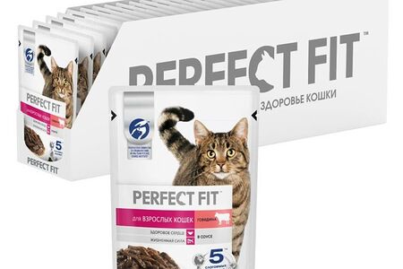 Корм для кошек PERFECT FIT говядина в соусе пауч 75г (упаковка - 28 шт) доставка