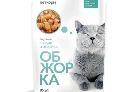 Корм для кошек ОБЖОРКА кусочки в желе с кроликом и индейкой пауч доставка