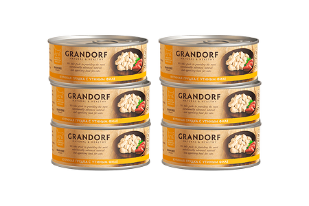 Корм для кошек GRANDORF Куриная грудка с утиным филе конс. 70г (упаковка - 6 шт) доставка