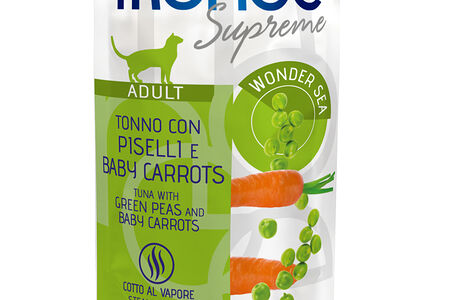 Monge Влажный корм Monge Supreme Adult cat для взрослых кошек тунец с зелёным горошком и мини-морковью, паучи доставка