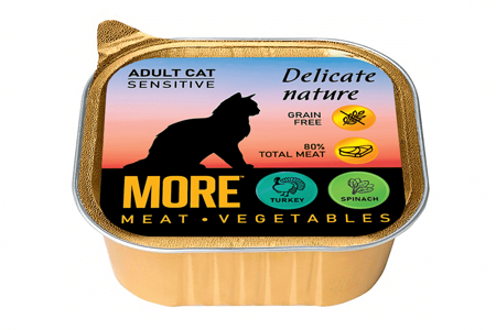 Корм для кошек MORE Delicate Nature для чувствит.пищевар., паштет с индейкой и шпинатом ламист. 100г доставка