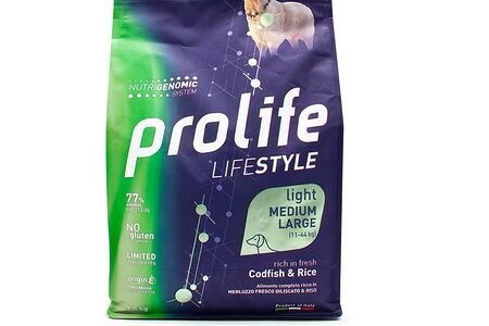 Корм для собак PROLIFE для средних и крупных пород с избыточным весом, треска с рисом сух. 2,5кг доставка