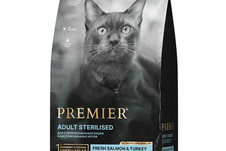 Корм для кошек Premier Premier Cat Salmon&Turkey Sterilised (Свежее филе лосося с индейкой) доставка