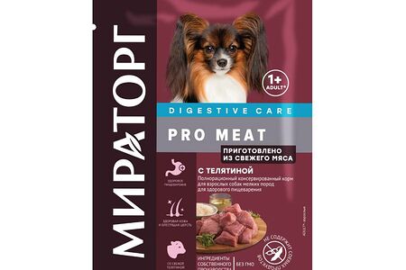 Корм для собак МИРАТОРГ Pro Meat для мелких пород для здорового пищеварения, телятина пауч 85г (упаковка - 24 шт) доставка