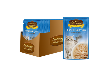 Корм для кошек ДЕРЕВЕНСКИЕ ЛАКОМСТВА Филейный тунец в нежном желе пауч 70г (упаковка - 12 шт) доставка