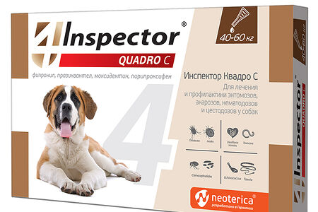 Inspector Квадро капли от внешних и внутренних паразитов для собак от 40 до 60кг доставка
