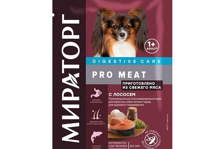 Корм для собак МИРАТОРГ Pro Meat для мелких пород для здорового пищеварения, лосось пауч доставка