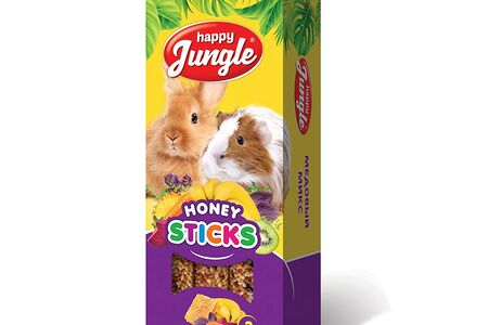 Лакомство для грызунов HAPPY JUNGLE Палочки для крупных грызунов, медовый микс, 6шт доставка