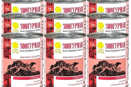 Корм для собак ЗООГУРМАН Мясное ассорти говядина конс. 750г (упаковка - 9 шт) доставка