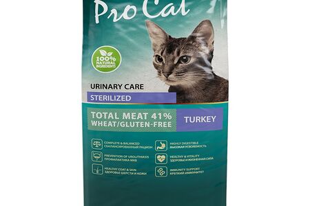 Корм для кошек PRO CAT для стерилизованных для профилактики МКБ, индейка сух. 1,5кг доставка