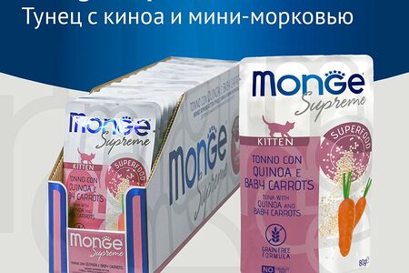 Корм для котят MONGE Supreme Pouch тунец с киноа и мини-морковью пауч 80г (упаковка - 24 шт) доставка