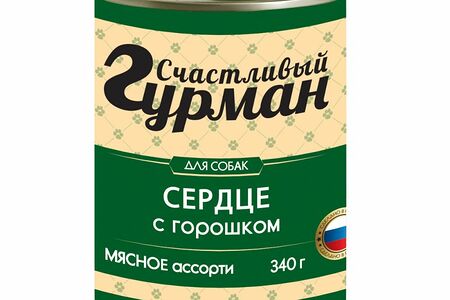 Корм для собак СЧАСТЛИВЫЙ ГУРМАН Мясное ассорти с сердцем и горошком конс.340г доставка