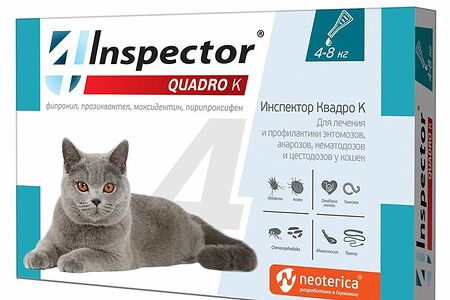 Капли для кошек INSPECTOR Quadro от внешних и внутренних паразитов (от 4-8кг) 1 пипетка доставка