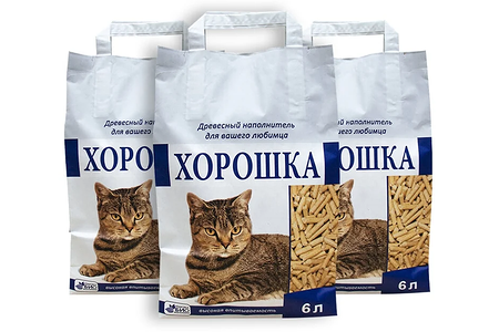 Наполнитель для кошачьего туалета хорошка древесный 18 л (упаковка - 3 шт по 6 л) доставка