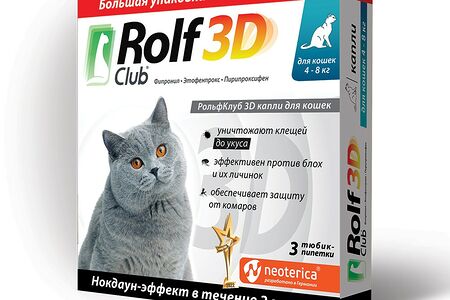 Капли для кошек ROLF CLUB 3D от блох и клещей (4-8кг) 3 пипетки доставка