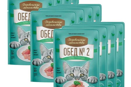 Корм для кошек ДЕРЕВЕНСКИЕ ЛАКОМСТВА Тунец с курицей пауч 50г (упаковка - 12 шт) доставка
