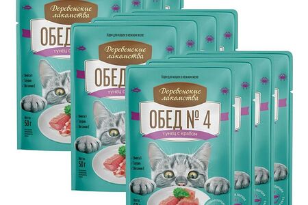 Корм для кошек ДЕРЕВЕНСКИЕ ЛАКОМСТВА Тунец с крабом пауч 50г (упаковка - 12 шт) доставка